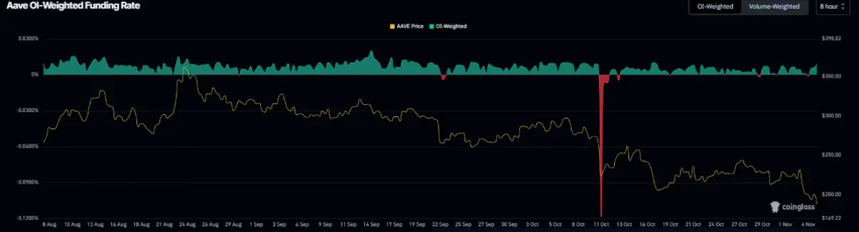 Grafik tingkat pendanaan Aave | Sumber: CoinglassPerlu dicatat, tingkat pendanaan telah beralih ke level positif, mencapai 0,0089% pada hari Rabu, menunjukkan bahwa pihak pembeli (Long) sekarang harus membayar biaya kepada pihak penjual (Short). Sejarah pasar menunjukkan bahwa, setiap kali tingkat pendanaan berbalik dari negatif menjadi positif, harga AAVE biasanya melonjak kuat dalam pemulihan berikutnya.