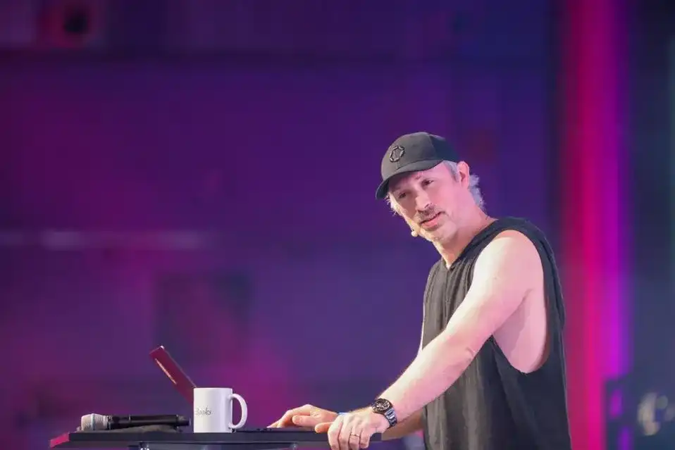 Gavin Wood berbicara di konferensi Decoded di Brussels pada bulan Juli 2024