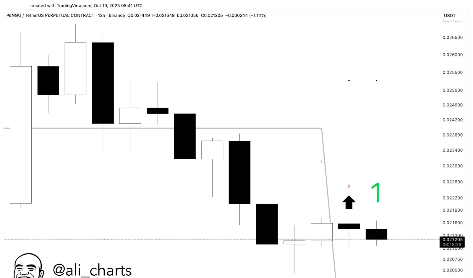 Pengu saat ini diperdagangkan pada $0.02278, meningkat 5,5% dalam 24 jam terakhir, tetapi masih 11,7% di bawah puncak mingguan. Meskipun penurunan baru-baru ini, analis Ali Martinez tetap optimis, menekankan bahwa tim Pengu terus membangun terlepas dari kondisi pasar, dengan fokus yang kuat pada fundamental jangka panjang.