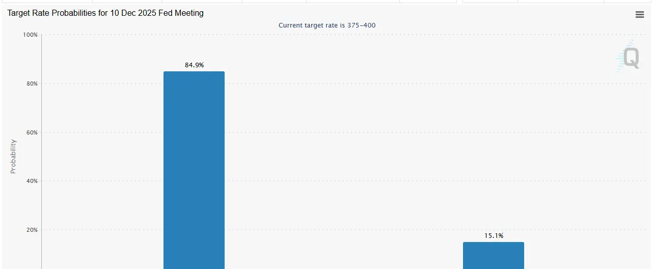 Odds untuk pemotongan suku bunga Desember pada Alat Fedwatch CME kini melonjak menjadi 85%. Kemarin, pasar menguat setelah mencerna peluncuran Gemini 3 oleh Google, model AI paling canggih dari raksasa teknologi tersebut. Pendekatan Google yang lambat dan stabil terhadap pengembangan AI telah membantu menenangkan ketakutan yang meluas akan gelembung. Semua perkembangan ini mengisyaratkan sentimen yang semakin berisiko di Wall Street. Jika optimisme ini berlanjut, dapat memicu reli Natal yang membawa bitcoin melewati hambatan enam angka.