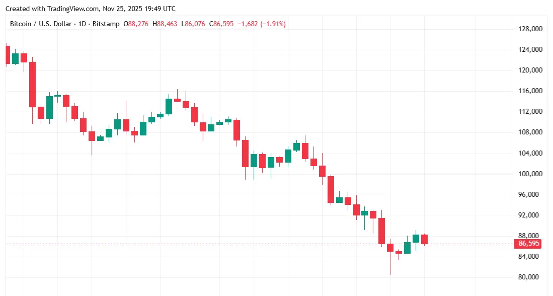 Geoffrey Kendrick dari Standard Chartered dengan tepat memprediksi penurunan di bawah $100K bulan lalu. Yang dia salah adalah seberapa lama penurunan itu akan bertahan. “Ini mungkin adalah terakhir kalinya Bitcoin berada di BAWAH 100k,” kata Kendrick. BTC kemudian jatuh hingga $80K dan telah terjebak sejak saat itu. Namun mungkin pemotongan suku bunga pada bulan Desember akan menjadi tanda yang cukup bullish untuk mengangkat cryptocurrency kembali ke wilayah enam angka.