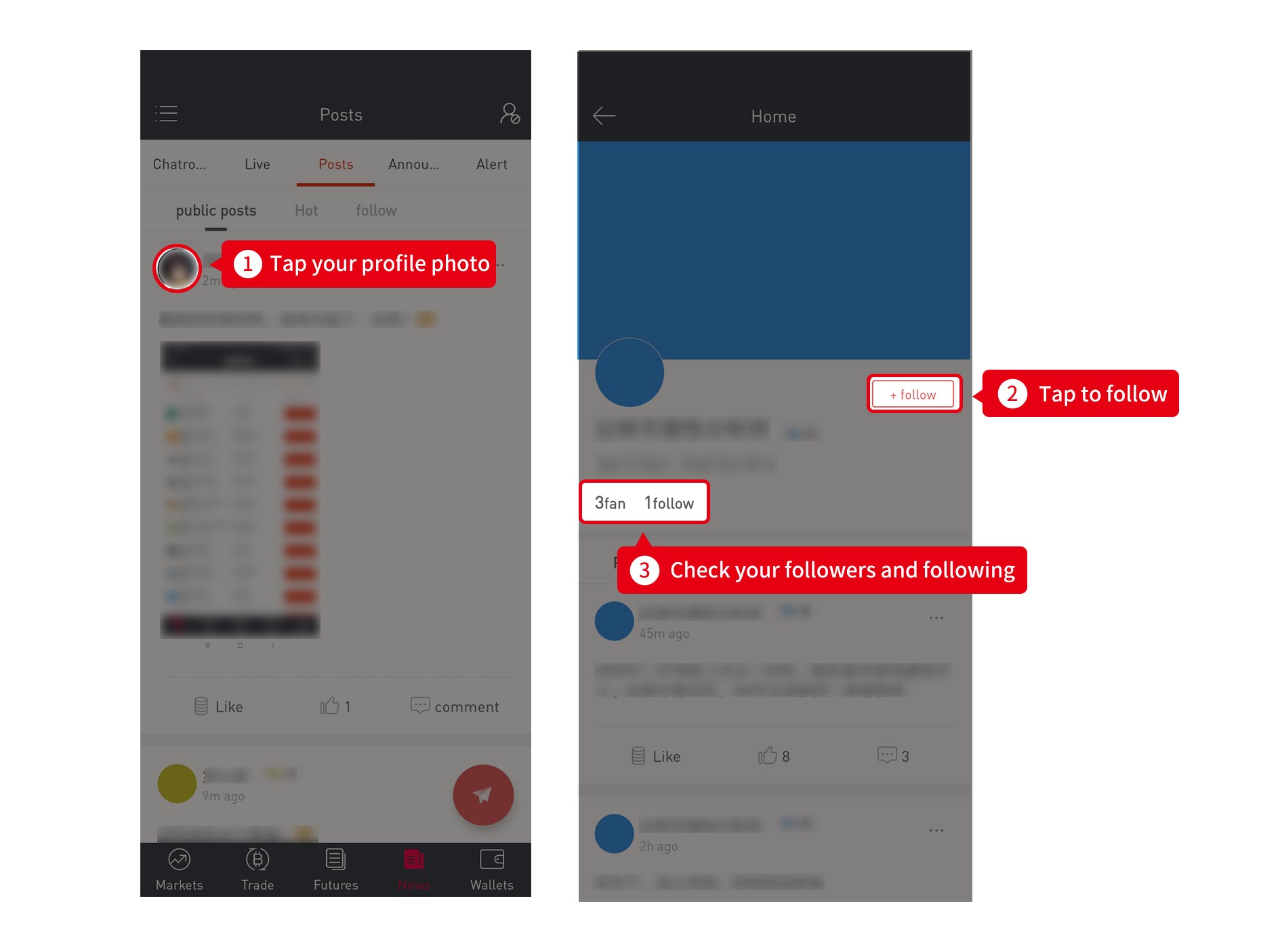 2. Added a “follow” feature; users can follow and unfollow others in Crypto Space, at detail page or in My Profile.