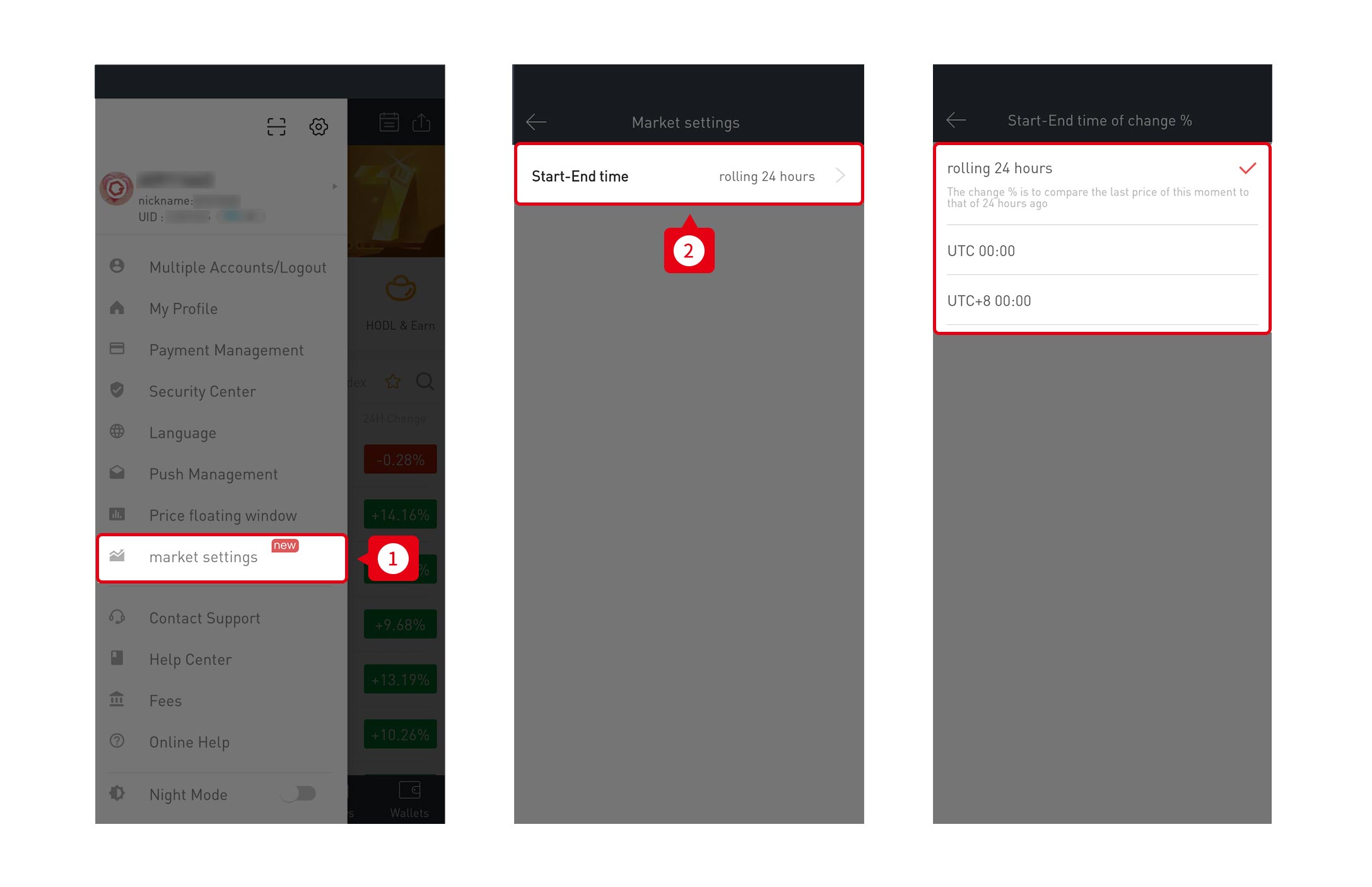 1. Added “market settings” section for users to set start-end time for price limit, allowing for a 24-hour clock, UTC+0, and UTC+8.