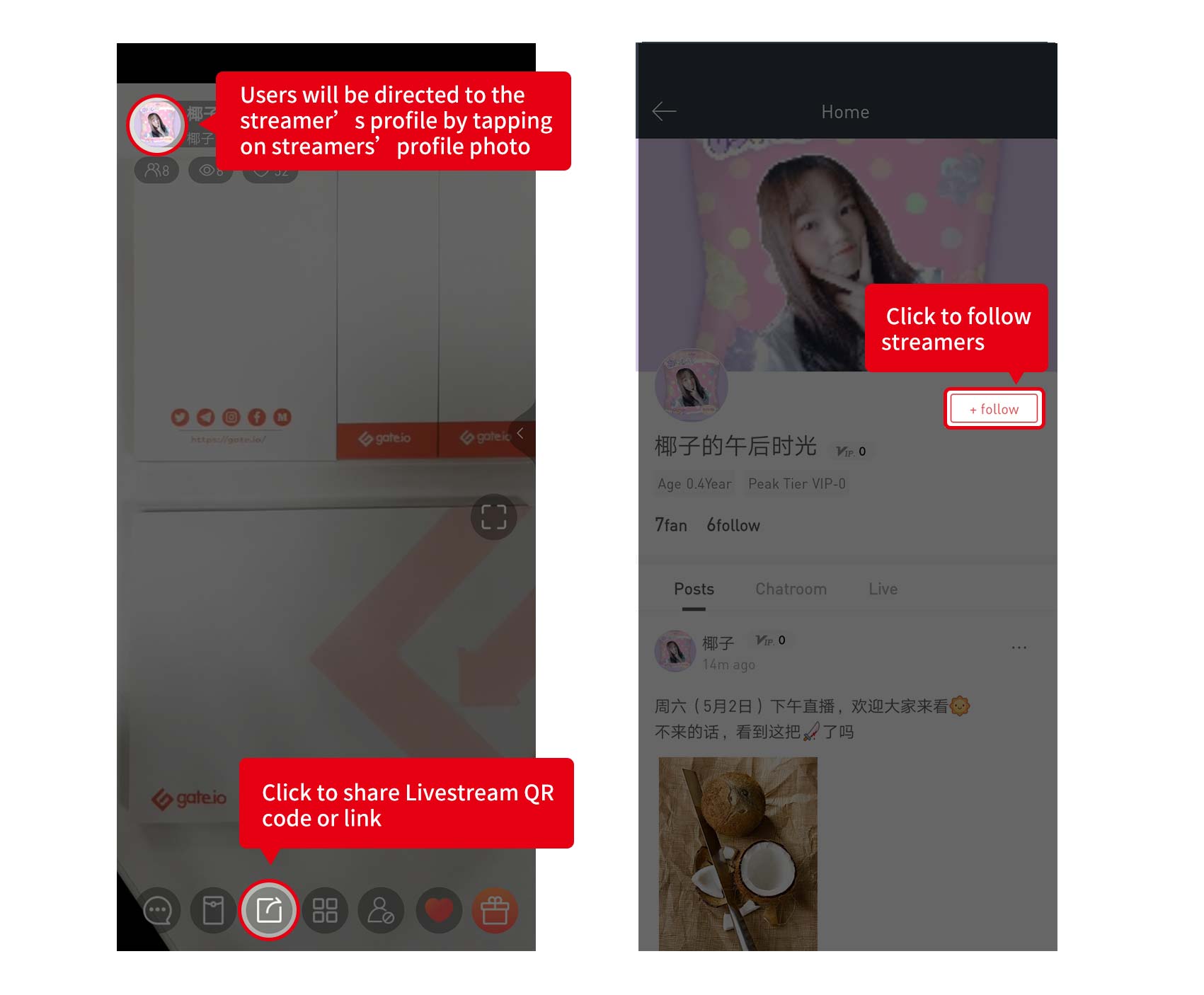 2. Users will be directed to the streamer’s profile by tapping on streamers’ profile photo during Livestreams