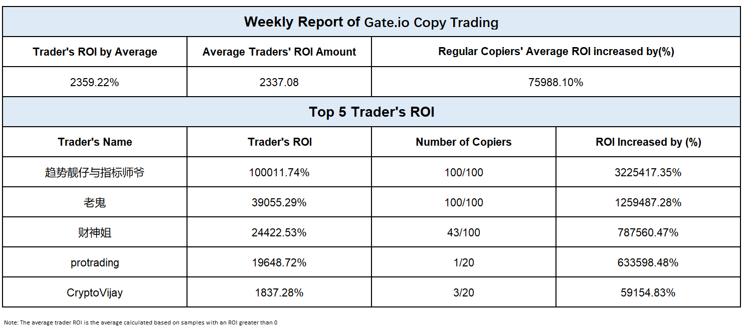 Weekly report data shows: the average ROI, ROI of current traders, comparison with the average ROI in the current market, and the average ROI that Gate traders can help copiers to achieve.