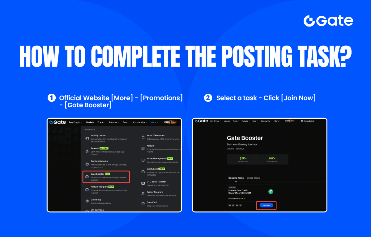 Gate Booster is designed to bring together high-quality creators and KOLs worldwide to actively participate in the growth of the Gate ecosystem. Unlike traditional promotional events that focus primarily on conversion, posting tasks emphasize original content creation and social influence. To optimize your creation experience and ensure accurate and efficient reward settlement, this guide explains how to participate in tasks in accordance with platform requirements.