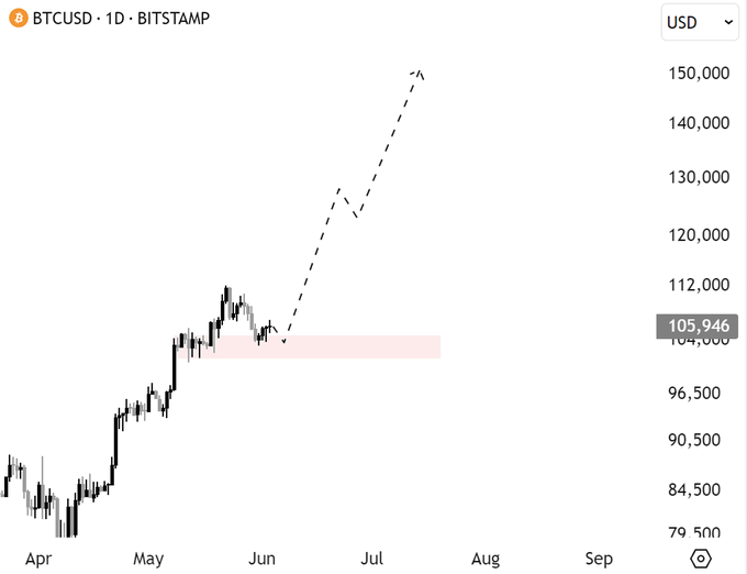 価格が105,000ドルのサポートを高い確率( )しっかりと保持できる場合、ビットコインはゴールデンクロスの後に古典的なトレンドを繰り返し、150,000ドルのエリアに向かって進む可能性があります