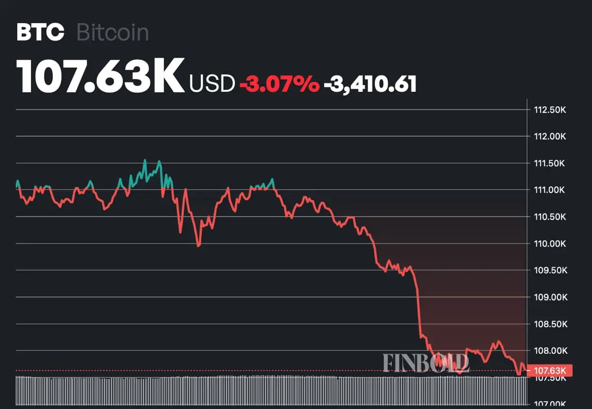 ビットコインは24時間で3.07%下落し、$107,580で取引されています。これは、より広範な暗号市場の2.96%の下落を下回っています。重要な$107,000のサポートレベルを維持しているにもかかわらず、基準となる暗号は現在、30日間で6.74%の下落を記録しています。