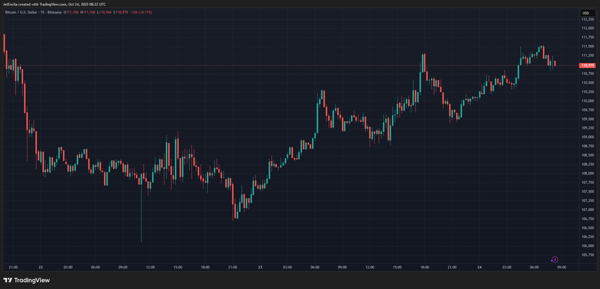 ビットコインは24時間チャートで$111,002で取引されています:TradingView