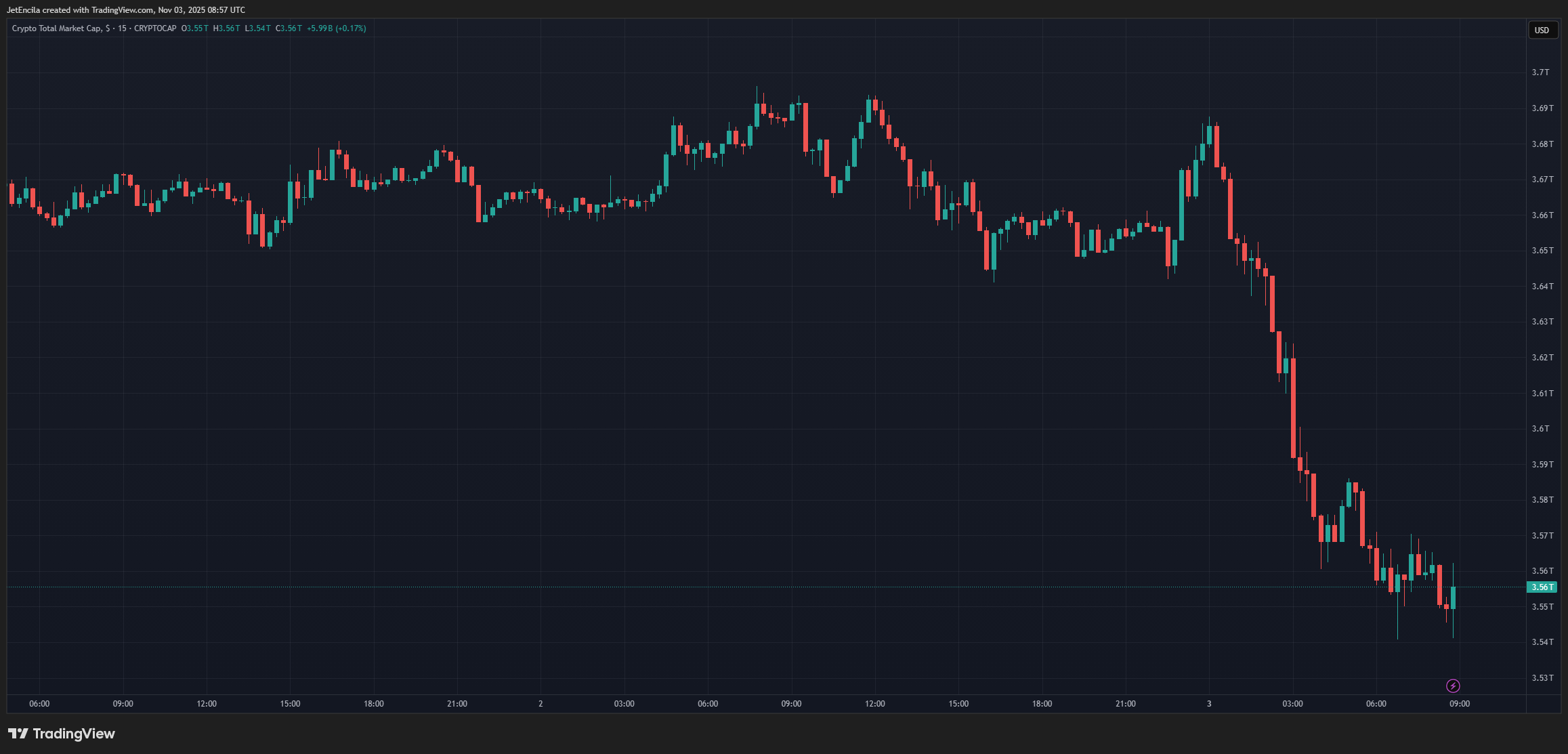 デイリーチャートでの暗号市場の総評価額は3.56兆ドルです: TradingView