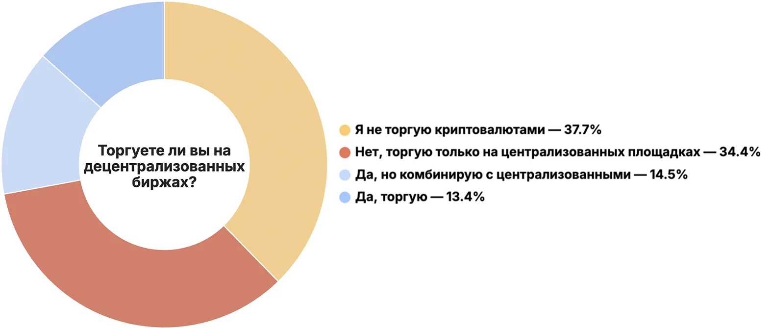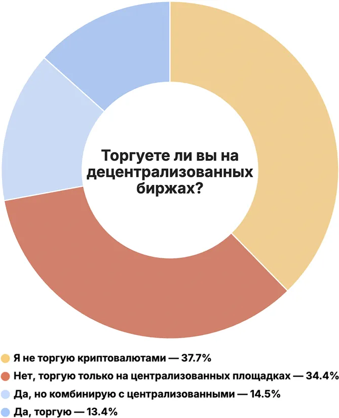 中央集権型取引所を利用しているのは34.4%、複数のプラットフォームを併用しているのは14.5%です。