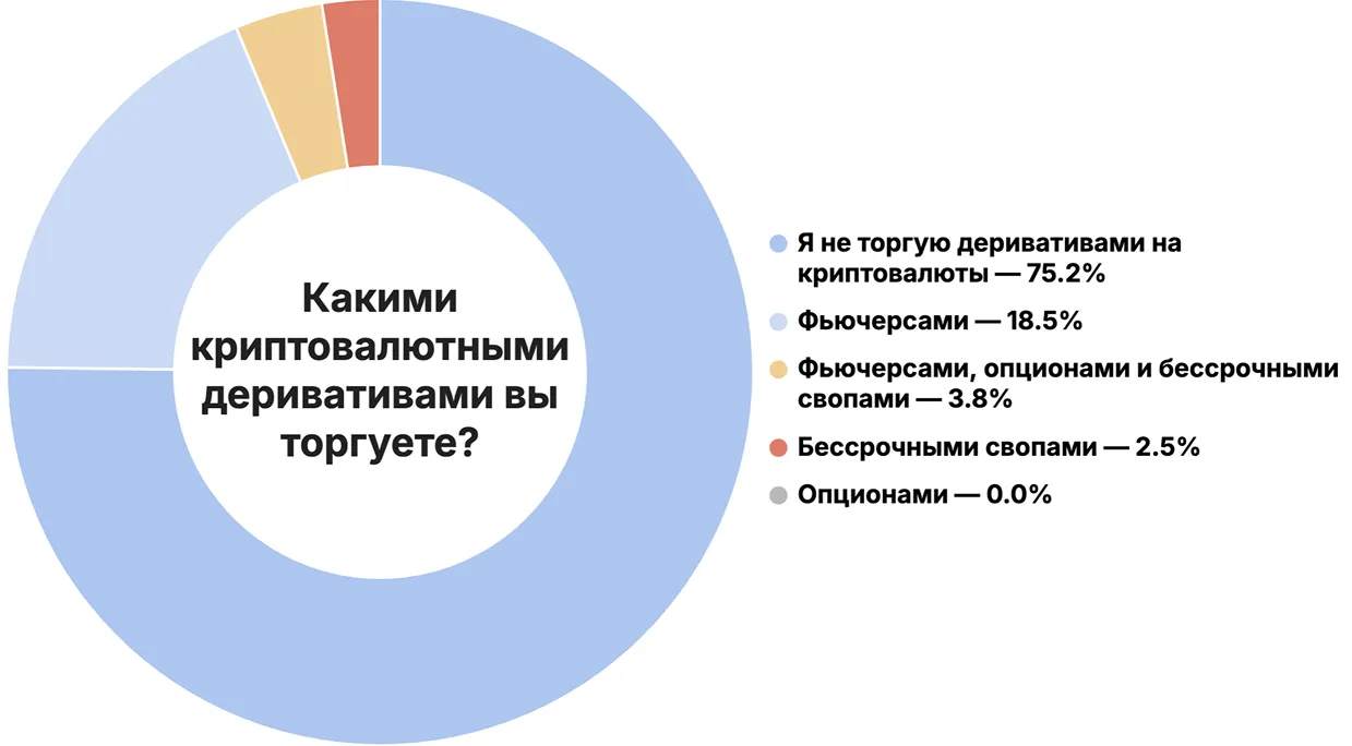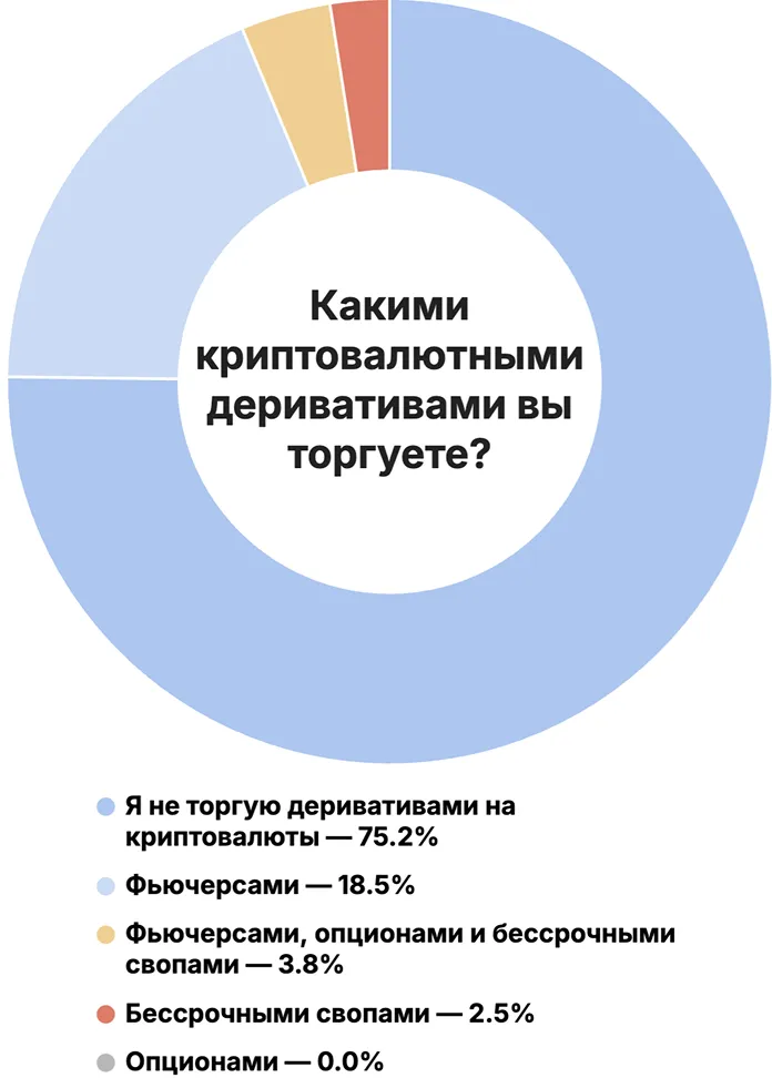 大多数の回答者、75.2%は暗号通貨デリバティブを取引しておらず、18.5%は先物を好んでいます。