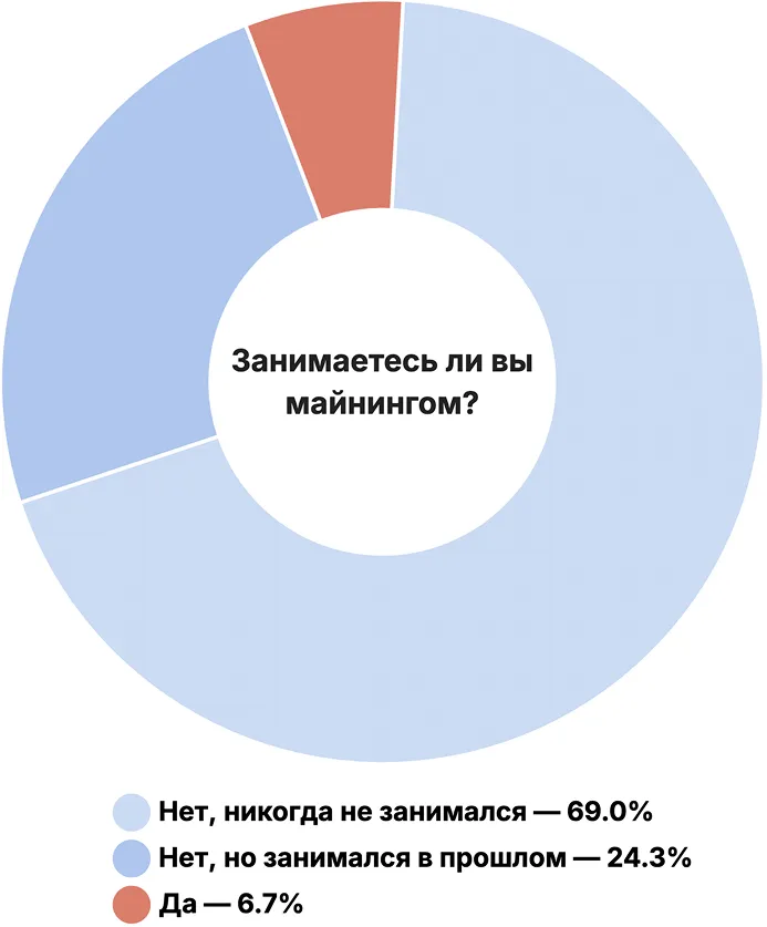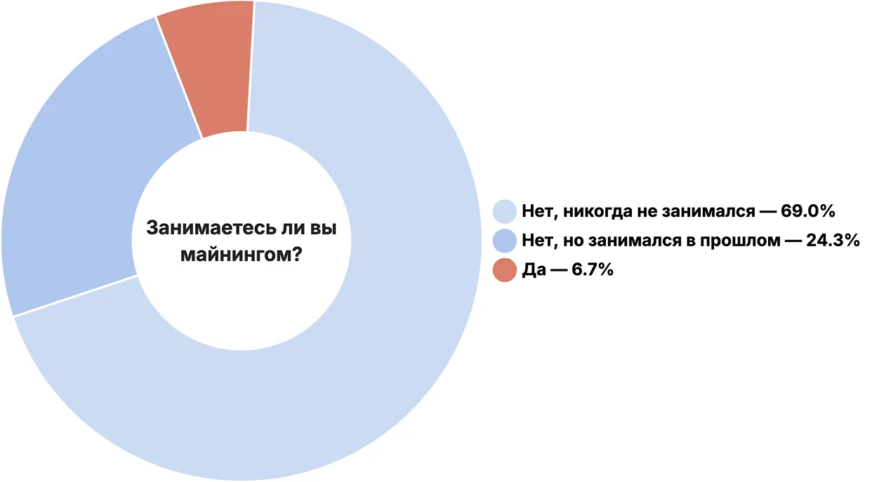 調査参加者の6.7%が暗号通貨の採掘に従事しています。大多数の69%は一度もマイナーになったことがありません。