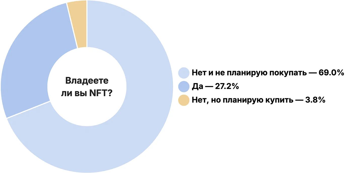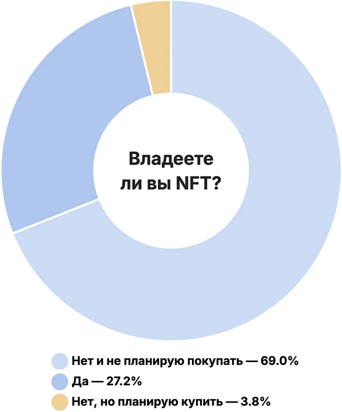 フォークログの読者のうち、NFTを所有しているのは27.2%未満です。大多数の69%はNFTを持っておらず、購入予定もありません。