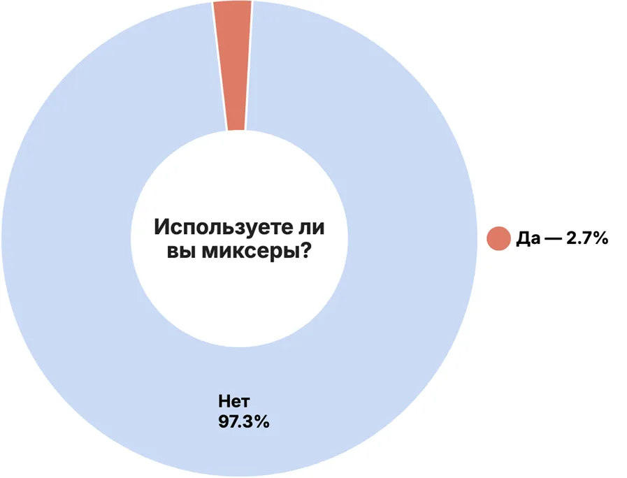 回答者の大多数は高いプライバシーを重視した暗号通貨、(81.3%やミキサー)97.3%をトランザクションに使用していません。