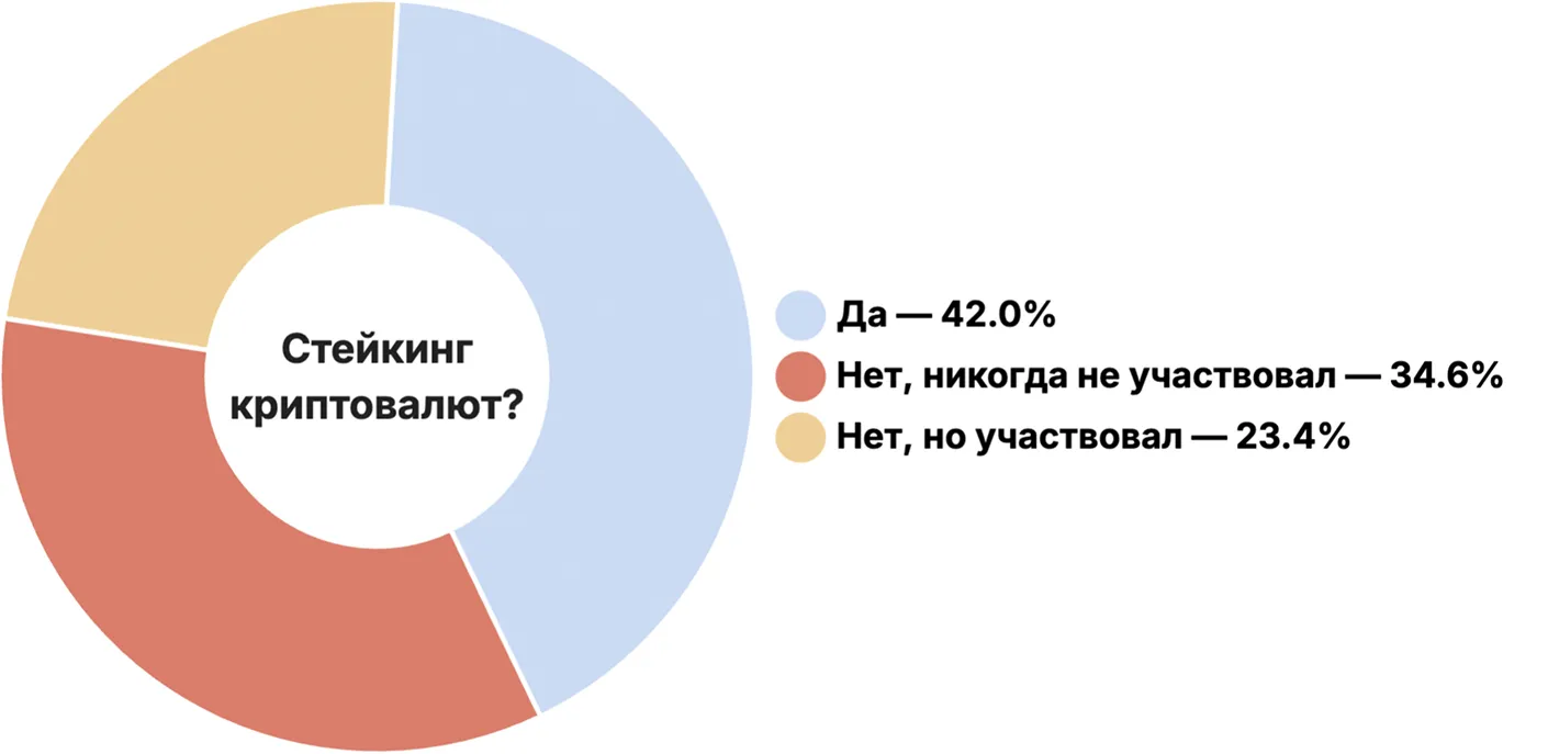 ステーキングには42%が参加しており、23.4%は以前この活動を行っていました。
