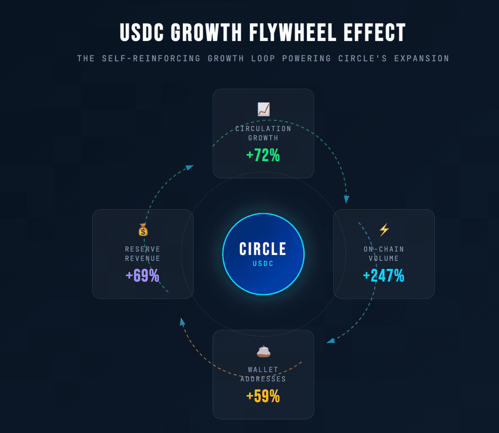 この財務報告を分析すると、成長の主な原動力は引き続きUSDCにある。データは、USDCの採用が量と価格の両面で拡大する「飛輪効果」段階に入ったことを示している。