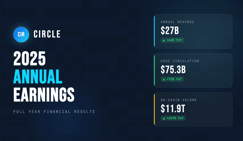 2026年2月25日、ステーブルコイン発行企業のCircle Internet Groupは、2025年12月31日時点の第4四半期および通年の財務実績を発表した。この財務報告は、Circleの上場後初の年間成績表であるとともに、そのコア資産であるUSDCの堅調な成長データにより、オンチェーン金融と従来の決済システムの融合過程を観察する上で重要なサンプルとなっている。