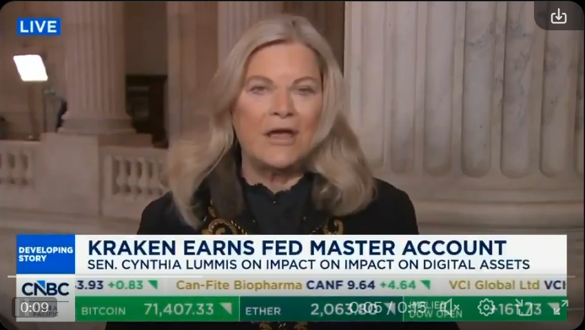 米国上院議員シンシア・ルミス:銀行はビットコインのようなデジタル資産のサービスを提供できるようになる