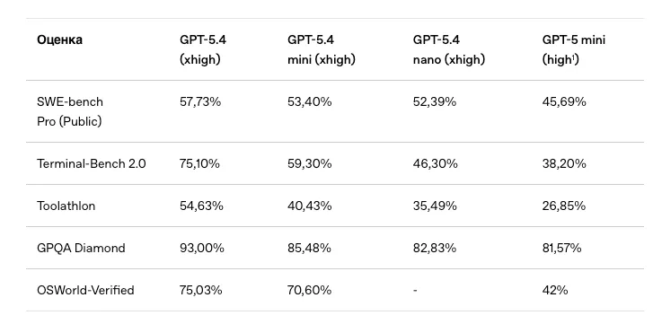 OpenAIは高速なAIモデルであるGPT-5.4 miniとGPT-5.4 nanoを発表しました - ForkLog:暗号通貨、AI、シンギュラリティ、未来