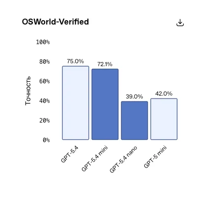 GPT‑5.4 miniは、インターフェース管理に関するマルチモーダルタスクで「優れた」結果を示しています。モデルは、過負荷のユーザーパネルのスクリーンショットを瞬時に解釈し、迅速に操作を実行できます。