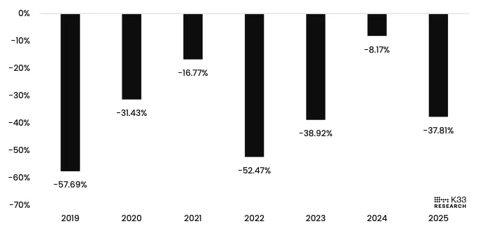 # K33はイースター前にビットコインの流動性が低下していることを警告ここ数日で、ETFを通じた最初の暗号資産に対するショートポジションの出来高が22%急増し、9012 BTCにまで達した。こうした水準は観測史上でわずか2回しか記録されていないと、K33のアナリストは指摘したProShares(BITIおよびSBIT)のショートポジション向けビットコインETF。出所:K33 同社調査部門のヘッドであるヴェトレ・ルンデは、現状は典型的な底形成の段階に一致しているとの見方を示した。そこでは、市場が弱気ポジションで過剰に埋まっている。これを裏付けるのは、マイナスの資金調達率が持続していることだとも述べた年率30日資金調達率と、マイナスの資金調達が続いた日数の長さ。出所:K33 > > *「平均の30日資金調達率は32日連続でマイナスのままです。さらに2週間で、2022年11月から12月にかけて観測されたマイナス指標の局面を、継続期間の点で上回る可能性があります」と彼は述べた。*> > > その他のオンチェーンデータも、周期的な最低点が近づいていることを示している。CryptoQuantによれば、ビットコインのスポット価格と実現価格の乖離は、2024年末の120%から現在の21%へと縮小した。歴史的に底が形成されてきた蓄積ゾーンまで、資産はさらに約20%下落する必要がある## 祝日前の低い流動性K33は、ビットコインのトレーダーが「攻撃的な慎重さ」を示していると述べた。圧力を生んでいるのは、弱い値動き、イランをめぐる紛争に関する不確実性、量子脅威に関する新たな警告、そして流動性が低い時期であるイースターの接近だ。多くの国で続く祝日は、伝統的な市場が閉まるため、取引量とボラティリティが低下する。その影響は暗号資産にも及ぶと、ルンデは強調した彼によれば、2019年以来、イースターの週におけるビットコインの7日間の取引回転は毎回、年間平均を下回っていた。同様に、ボラティリティでもこうした期間は、指標が年平均値から一貫して遅れていた。イースター期間におけるビットコインの取引量と年間平均指標との比率。出所:K33 執筆時点でデジタル・ゴールドは$68 600付近で取引されている。前日に終了した2026年の第1四半期は、当該資産にとって過去8年で最悪のものとなったBinanceの取引所におけるBTC/USDTの時間足チャート。出所:TradingView なお、Fidelityのアナリストは、ビットコインの史上最高値からの52%下落を、市場の成熟を示す兆候だと名付けたhttps://forklog.com/glavnoe-za-mesyats-dinamika-bitkoina-stejblkoin-transformatsiya-i-hajp-vokrug-openclaw