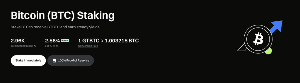 GTBTCのステーキングにより、投資家は安定した年率2.56%のリターンを得ることができます。これは暗号資産市場において相対的に堅実なリターンであり、市場の急激な変動を避けたいユーザーに特に適しています。