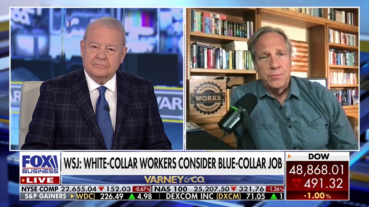 mikeroweWorks財団のCEOマイク・ローウェが『Varney & Co.』に参加し、ホワイトカラーからブルーカラーの雇用へ人々が移行していくこと、そして熟練技能を促進するためのテキサスでの取り組みの立ち上げについて語る。