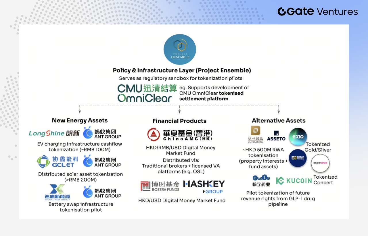 2024年8月、香港金管局はProject Ensembleのサンドボックスを開始し、最初の段階では固定収益・投資信託、流動性管理、グリーンファイナンス、貿易・サプライチェーン金融の4つの方向に焦点を当てました。その後、香港市場では代表的なトークン化やRWAプロジェクトが次々と登場し、概念検証からより実用的な展開へと進んでいます。