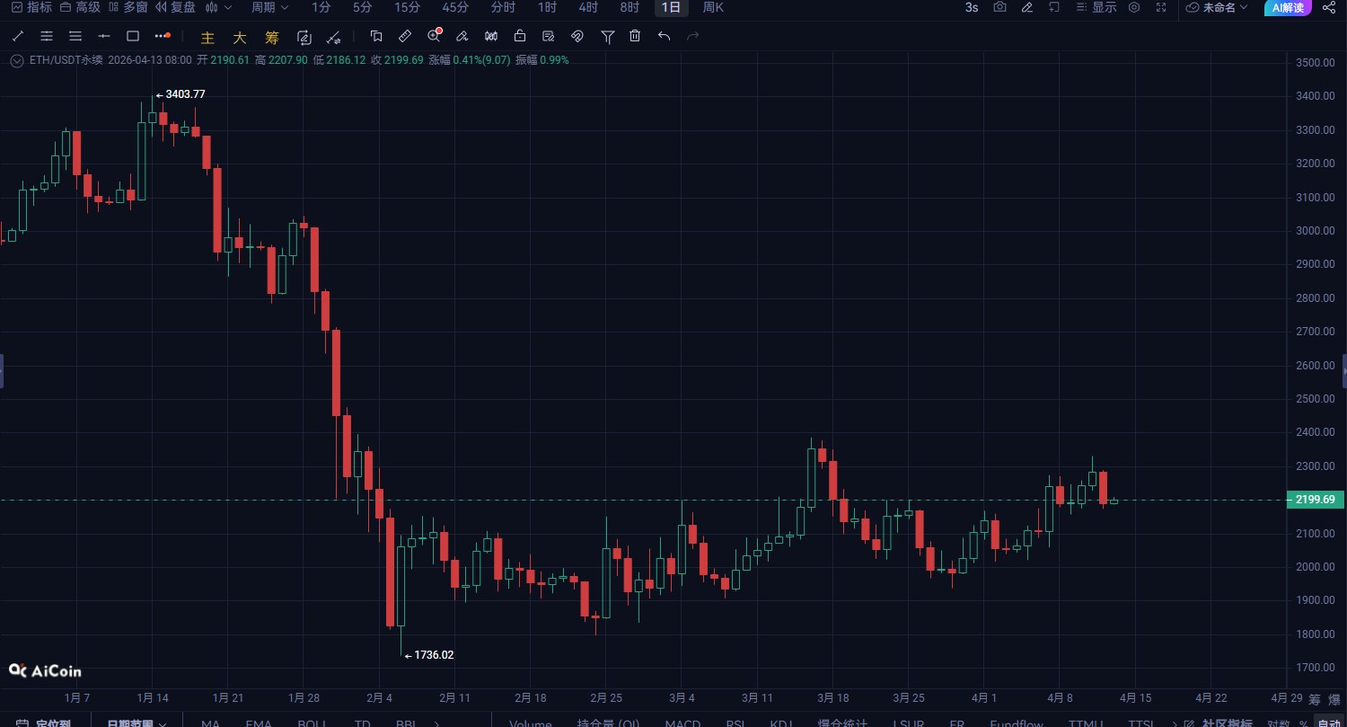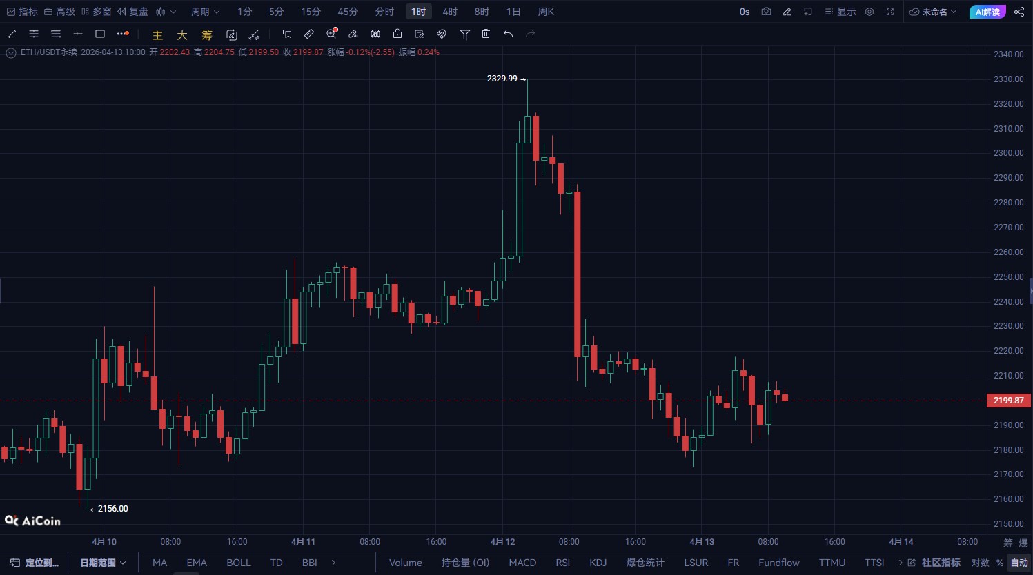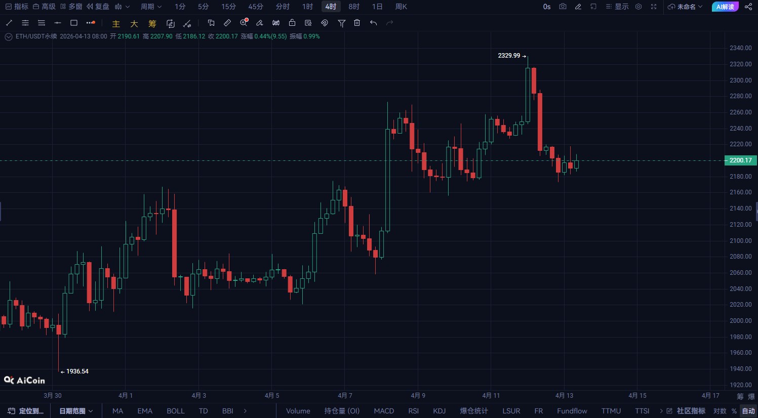 構造的に見ると、ETHは4月12日にも非常に攻撃的な一方通行の下落を示しました。この放量の長い陰線は、前期の上昇幅を飲み込み、短期サイクルのトレンドを直接変化させました。現在の市場の核心的な矛盾はただ一つです: