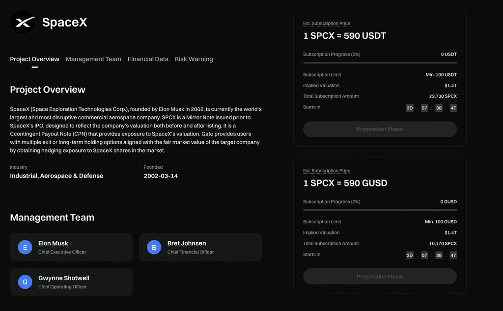 この引き受け活動を通じて、ユーザーは宇宙産業の未来のリーダーに早期に展開できるだけでなく、SpaceXの今後の市場パフォーマンスにも参加できます。