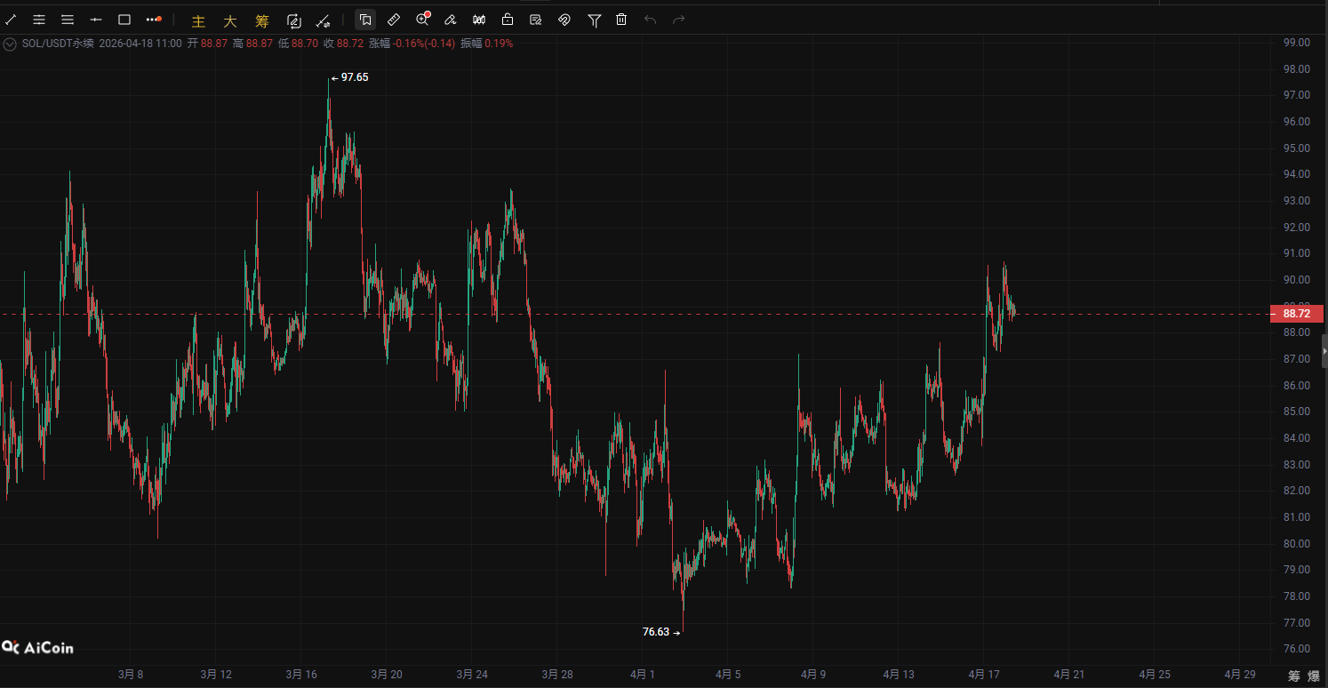 SOLが90ドルの重要な節目に接近!底部構造が徐々に形成されつつあり、100ドルが次の目標となる可能性|4月18日市場深度分析
