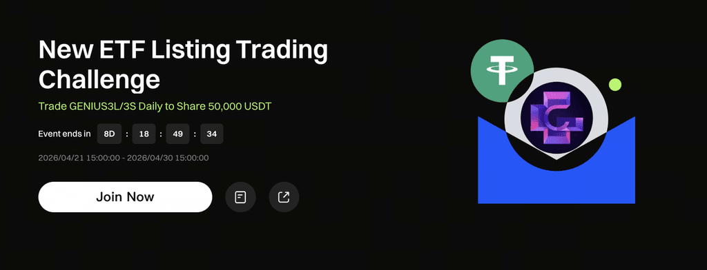 Gate ETF GENIUS3L と GENIUS3S 取引チャレンジが今すぐ開催中!2026年4月21日から4月30日までの期間中、この2つのETFを取引することで豪華報酬を獲得できます。毎日の打刻、全員福利、友達招待などを通じて、参加者は合計50,000 USDTの賞金プールを分け合うチャンスがあります。
