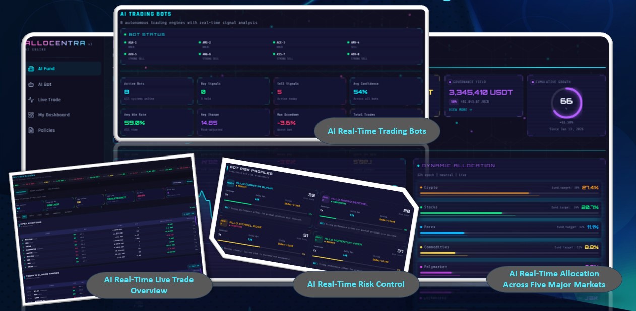 ARCBエコシステムの展示情報によると、Allocentraは実盤運用プラットフォームの形態で正式に実現し、概念開発段階から実資本投入と市場検証段階へと進展したことを示しています。