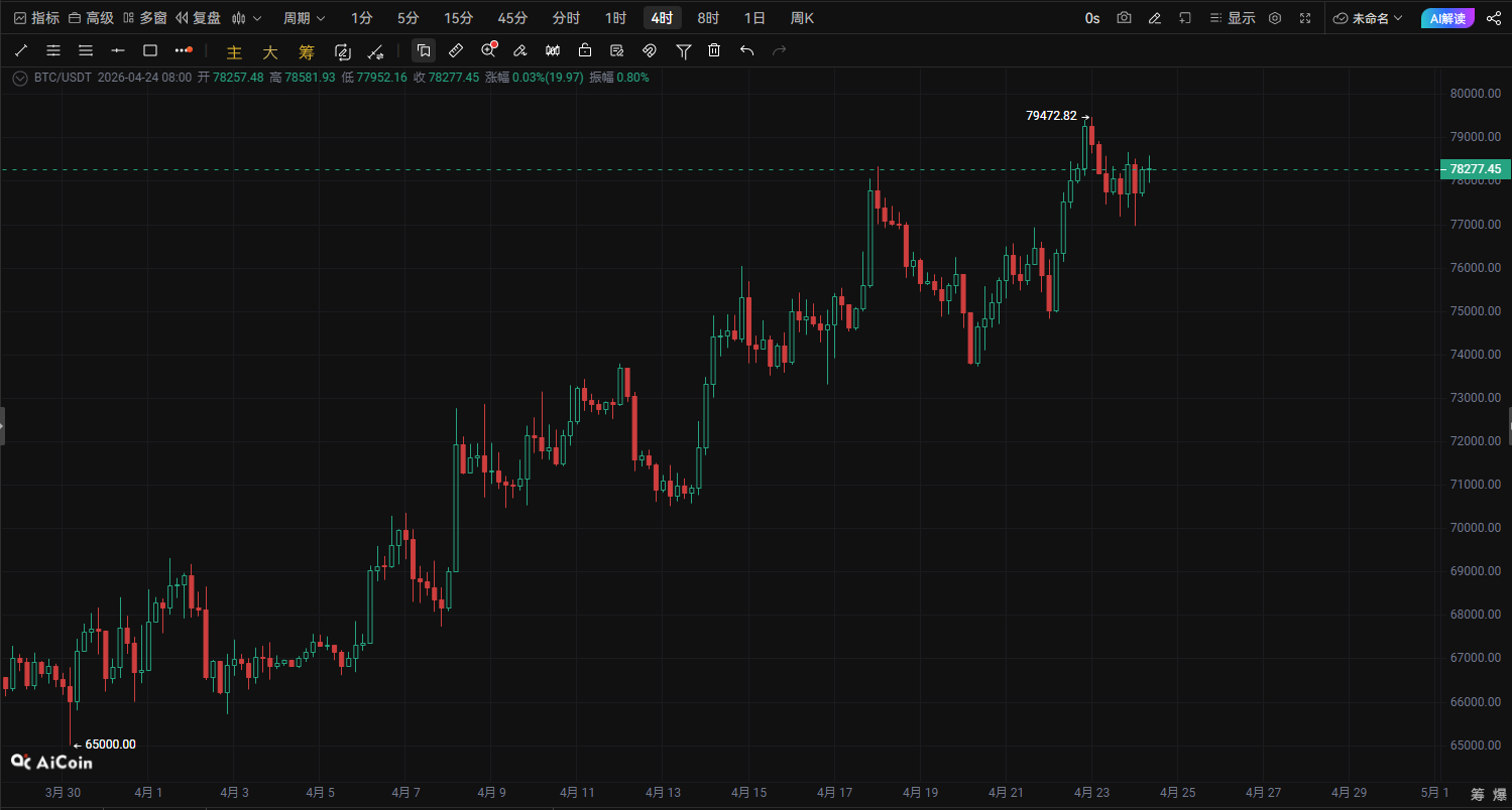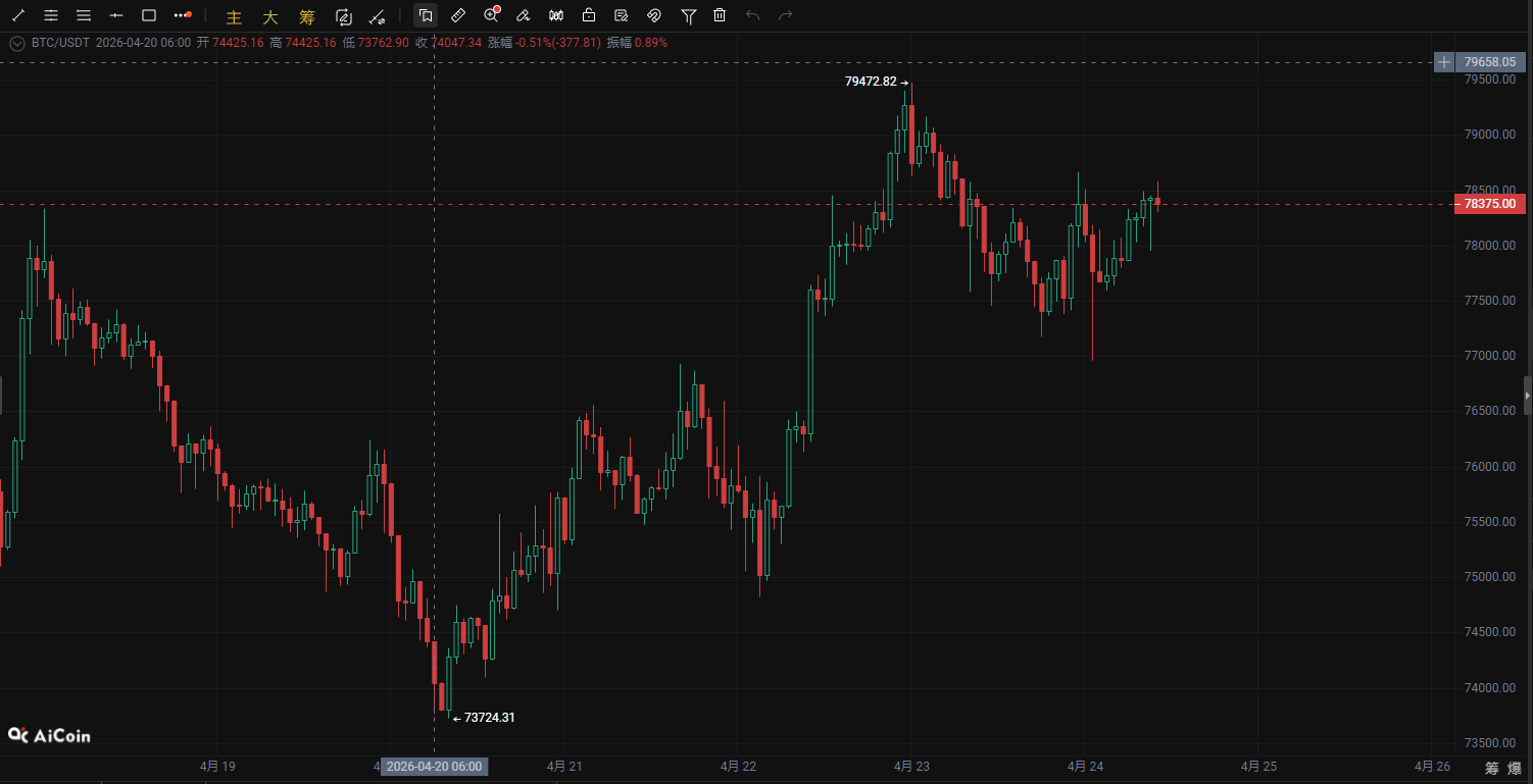 BTC上昇が勢いを欠く!78K以上で空売りの待ち伏せ、日内での技術的調整を迎える可能性
