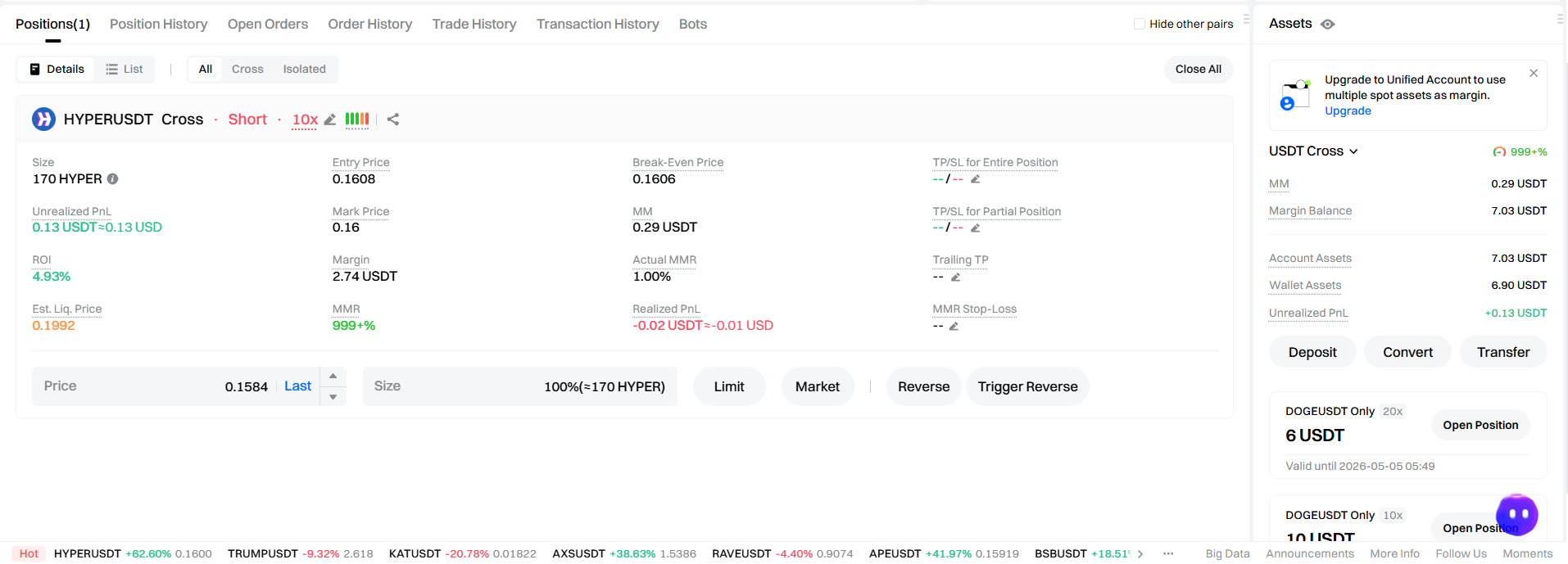📊 トレード概要: ペア:HYPER/USDT ポジション:ショート 状況:現在利益 ✅