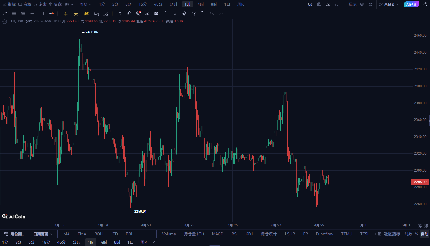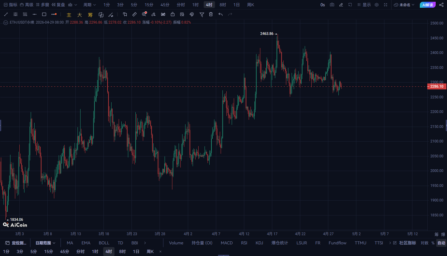 ETHの上昇一時停止を確認!2280を上回ると明らかに抵抗があり、短期的な押し戻しの構造が形成されつつある
