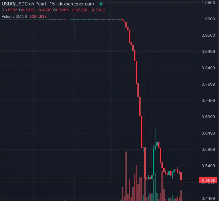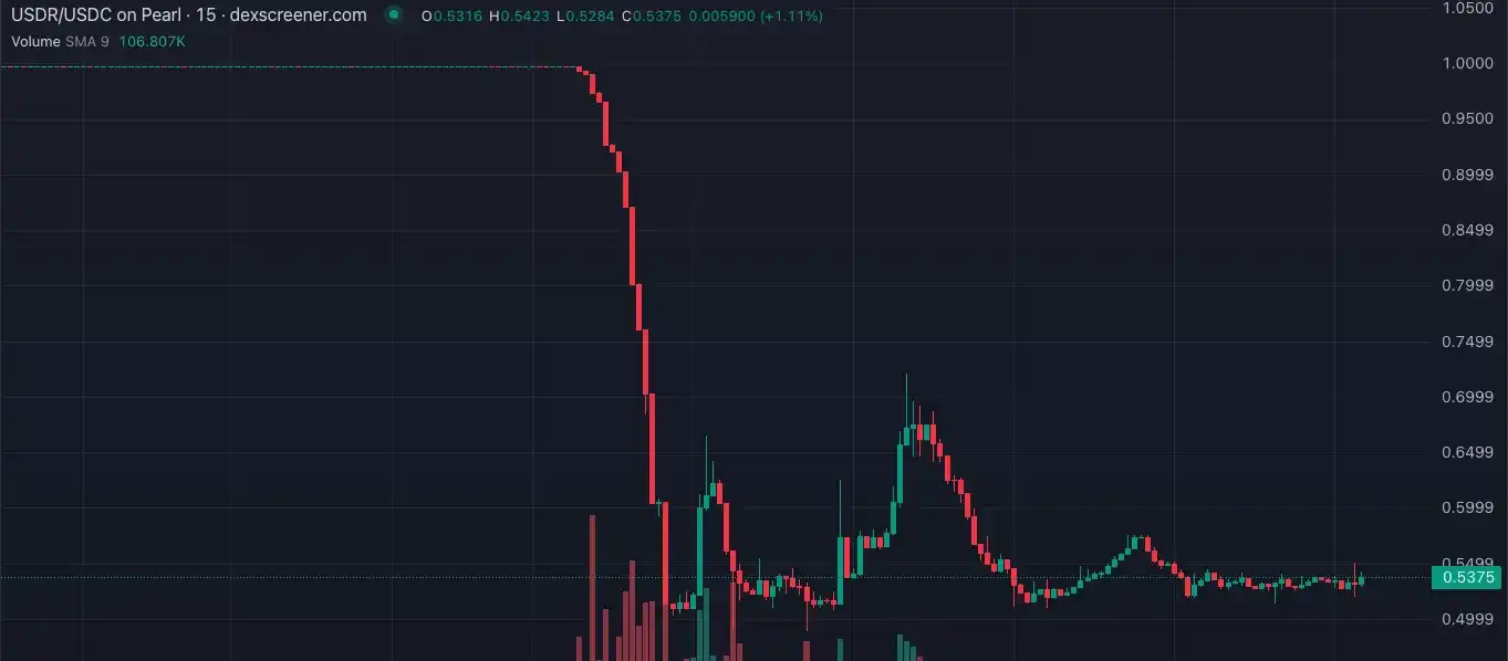 USDRは、6,000万ドルが流通している「ステーブルコイン」であり、そのほとんどは英国の不動産によって抵当に入れられていましたが、数時間で1ドルから0.5ドルに急速に下落しました。 これは古典的な「ラン」イベントであり、ステーブルコインの流動性の高い債務と流動性の低い担保の間に満期の不一致があります。