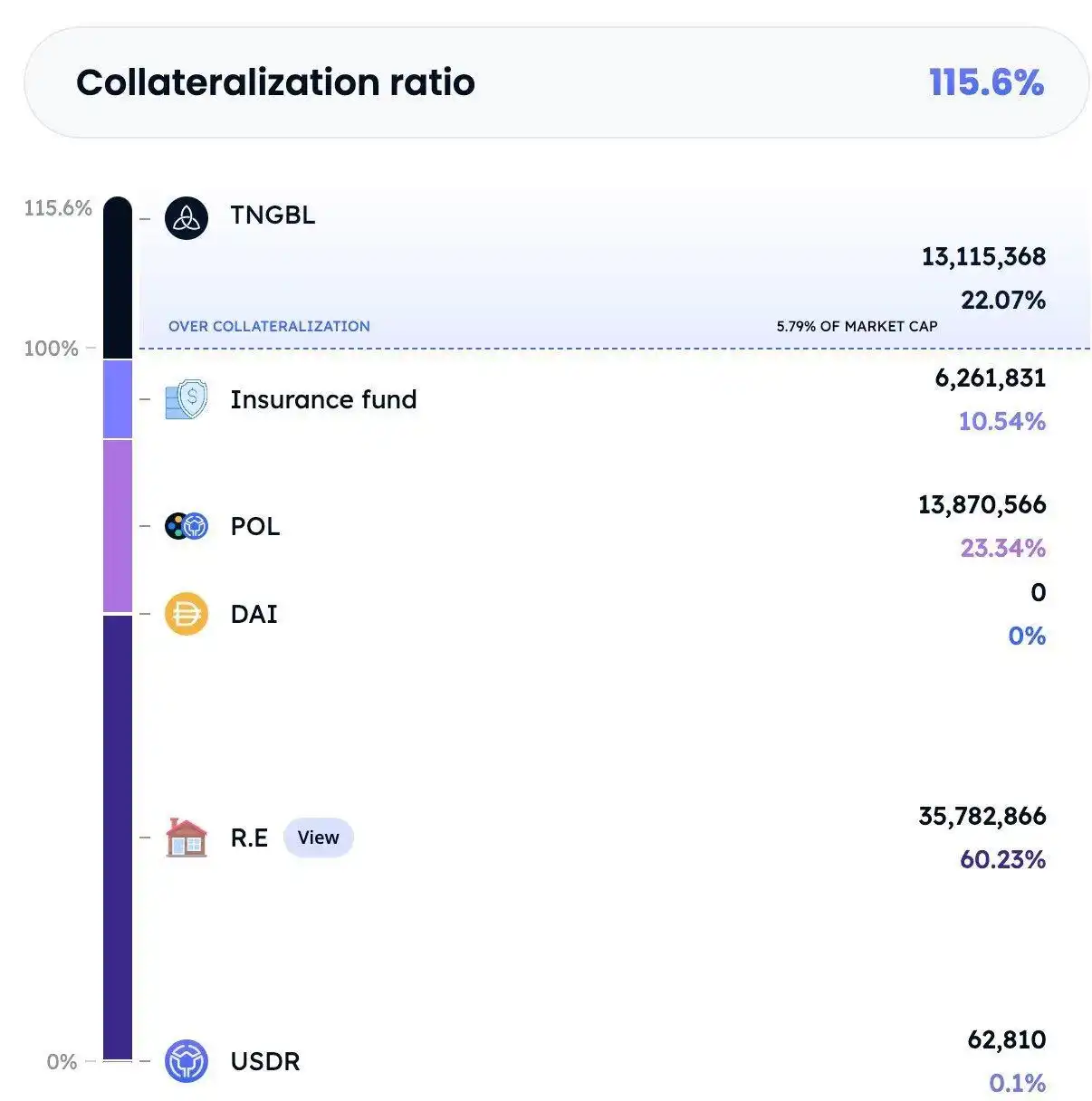 USDRは、TNGBLまたはDAIで1:1のスケールで鋳造できます。 このプロトコルは、TNGBLから生成されるUSDRの量に最大10%の制限を課しています。 スワップから集められたお金は、英国で家を購入するために使用されます。 タンジブルチームは、ギアリング以上の過剰担保がより多くの不動産担保を購入するために使用されたと文書に書いています。 しかし、タンジブルチームは、彼らはこれを決して行わず、すべての過剰担保は準備金として保持されていると私たちに言いました。