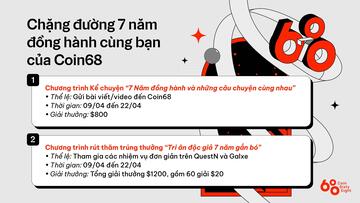設立と開発の 7 周年を記念して、Coin68 チームは、これまで私たちに協力してくれた読者に感謝するイベントを開催できることをうれしく思います。