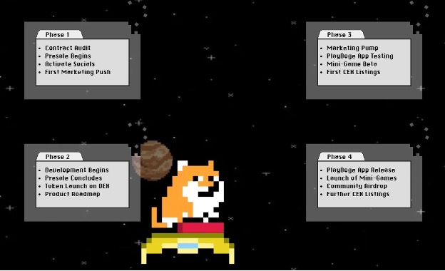 ロードマップによると、チームは現在、PlayDogeのGameFi機能に取り組んでいます。第2フェーズの終わりには、プリセールフェーズの結論、DEXsでのトークンのローンチ、ゲームの詳細なロードマップも見られる予定です。