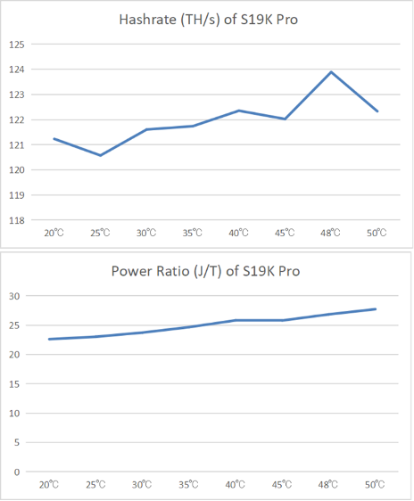 気温が上昇すると、Bitmain Antminer S19K Proのハッシュレートが変動し、電力比率が増加することから、その小さな熱容量は急激な温度変化の影響を悪化させます。これにより、極端な条件がなくても損傷が発生する可能性があります。