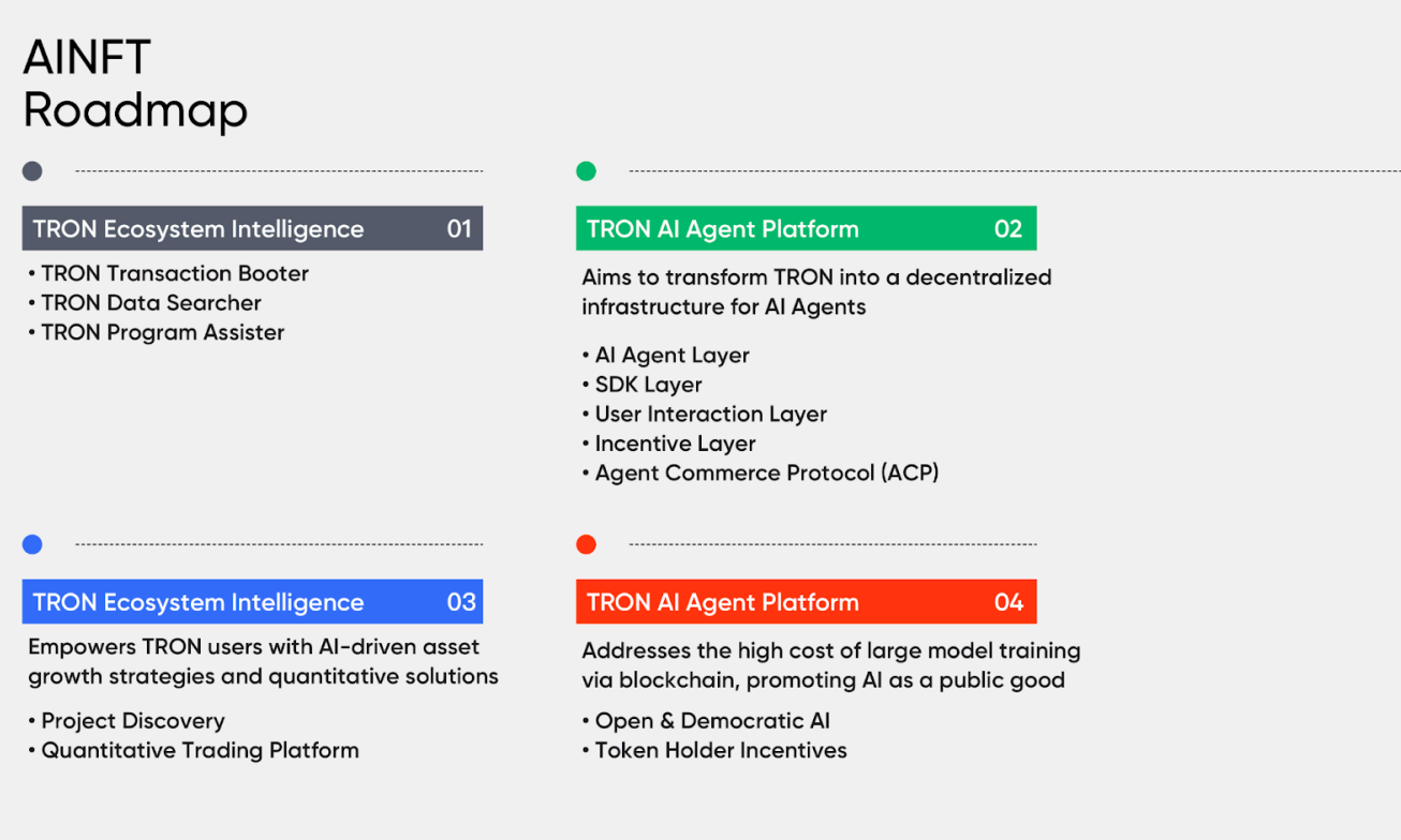 AINFT’s grand vision is to build a next-generation internet foundation by creating a smart, trustworthy, and self-sustaining digital ecosystem—one that supports diverse AI Agents, protects digital autonomy, and fosters economic independence. Constructed atop TRON’s robust infrastructure and powered by deep integration of AI and blockchain, AINFT represents not just a blend of two technologies, but a true paradigm shift.