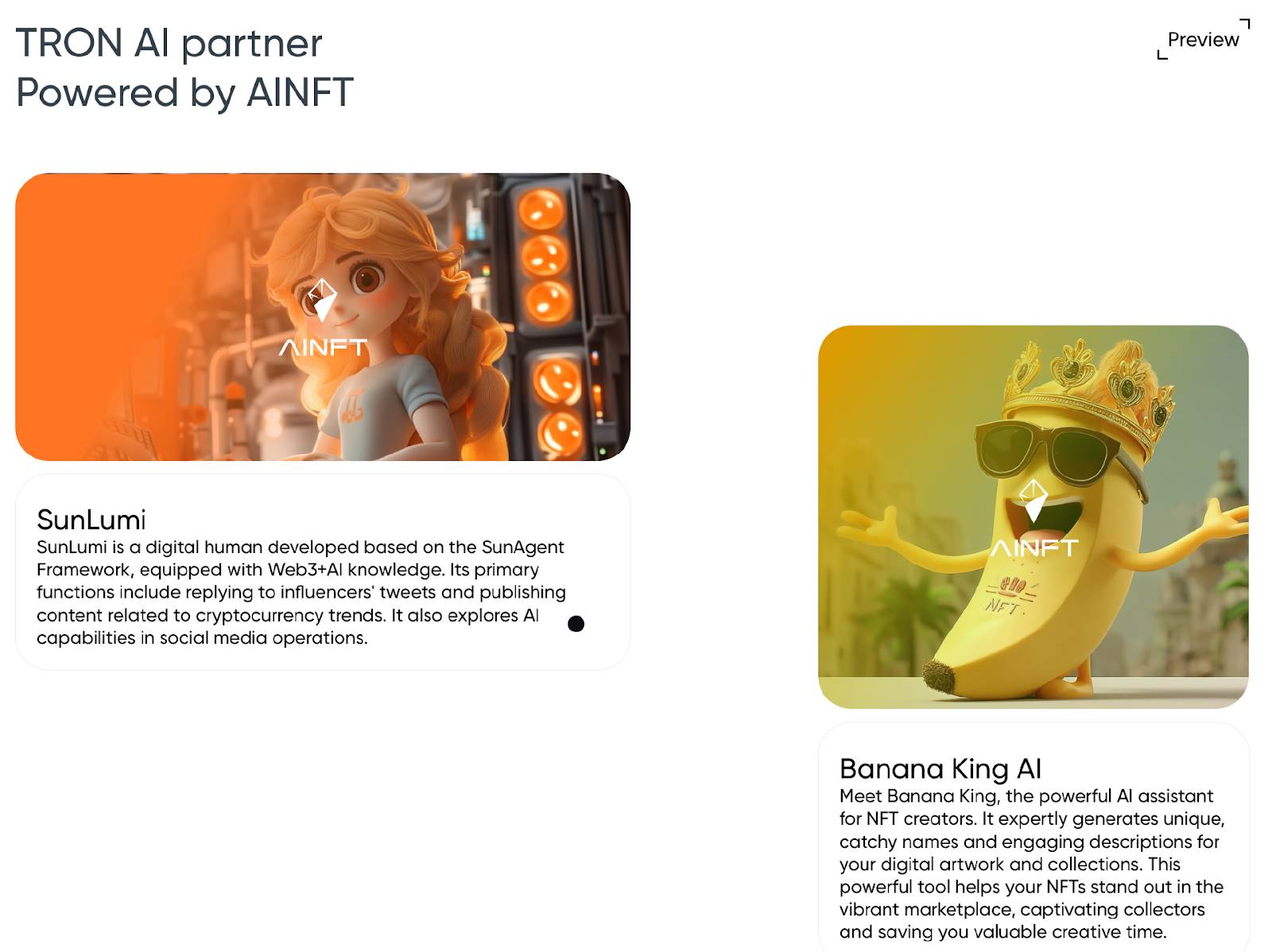 AINFT’s vision is already coming to life through a series of innovative projects: SunLumi, a digital avatar built on the SunAgent framework, is reimagining social media with a Web3+AI knowledge system—capable of both intelligent Twitter replies and proactive, accurate crypto trend analysis. Banana King AI, designed for NFT creators, excels at creative empowerment: it can generate concepts, deeply explore project cores, and precisely convey artistic value, enabling complete storytelling for NFT works. The breakthrough SunGenX platform further lowers the barrier for digital asset creation, allowing users to deploy Meme Tokens on-chain in minutes with a single tweet. These initiatives validate AINFT’s core direction: merging blockchain’s “trust foundation” with AI’s “intelligent dynamism.” They steadily advance toward a smarter, fairer, and more autonomous digital future.