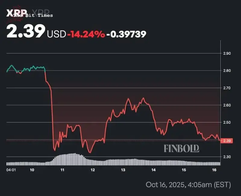 من الجدير بالذكر أن الرمز انزلق تحت العتبة النفسية المهمة $2.40 في 16 أكتوبر، موسعًا الانخفاض الذي شهد بالفعل تراجع XRP بأكثر من 14% من ذروة الأسبوع الماضي عند $2.79.
