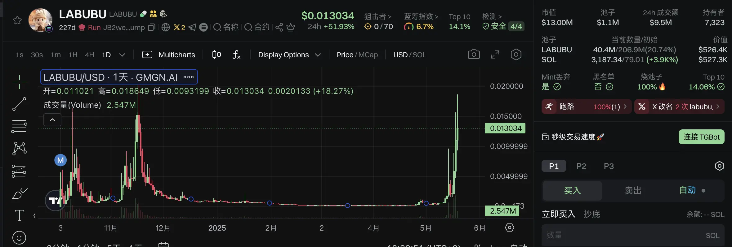 Recientemente, con el aumento en el lanzamiento de nuevas series de productos, el $LABUBU de monedas MEME se ha convertido una vez más en el foco del mercado. Varios conocidos influencers de criptomonedas publicaron contenido con la imagen de Labubu, lo que provocó una fuerte resonancia en la comunidad.