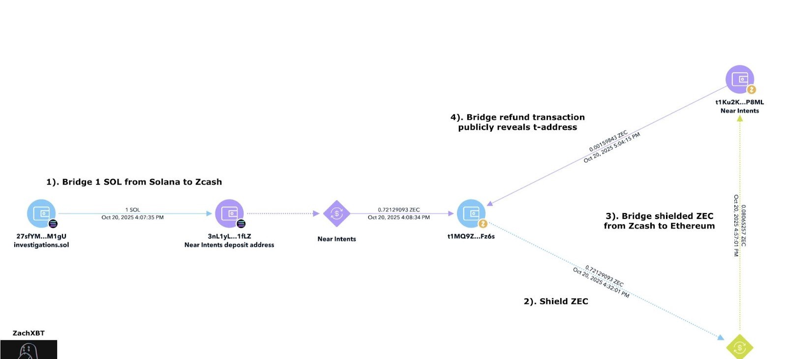 返金取引はZcashブロックチェーン上で公開されており、誰でもNEAR Intentsシステムと返金自体の間のタイミングと金額を照合できる可能性がありました。