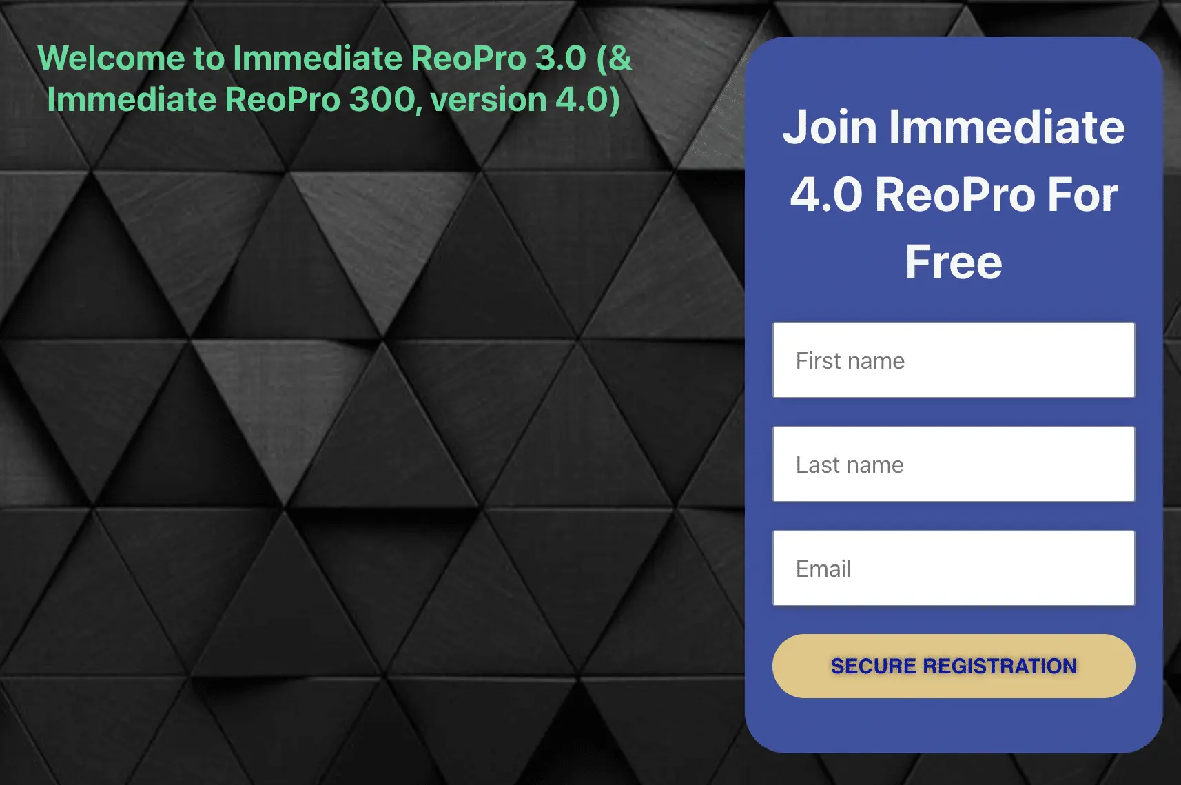 The Immediate 3.0 ReoPro website is heavy in terms of content. Before we break down that content and review the platform’s offerings, here are the key points to know about this website.