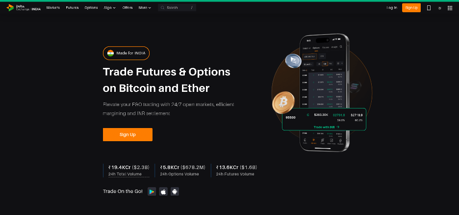 Delta Exchangeは、INR決済の暗号F&O取引を提供する最高の暗号取引所の1つです。インドの金融情報ユニット(FIU)に登録されているため、信頼できる安全な取引場所です。Delta Exchangeでは、オプションや先物をビットコインやイーサリアムなどの暗号通貨と交換でき、すべてINRで決済されます。