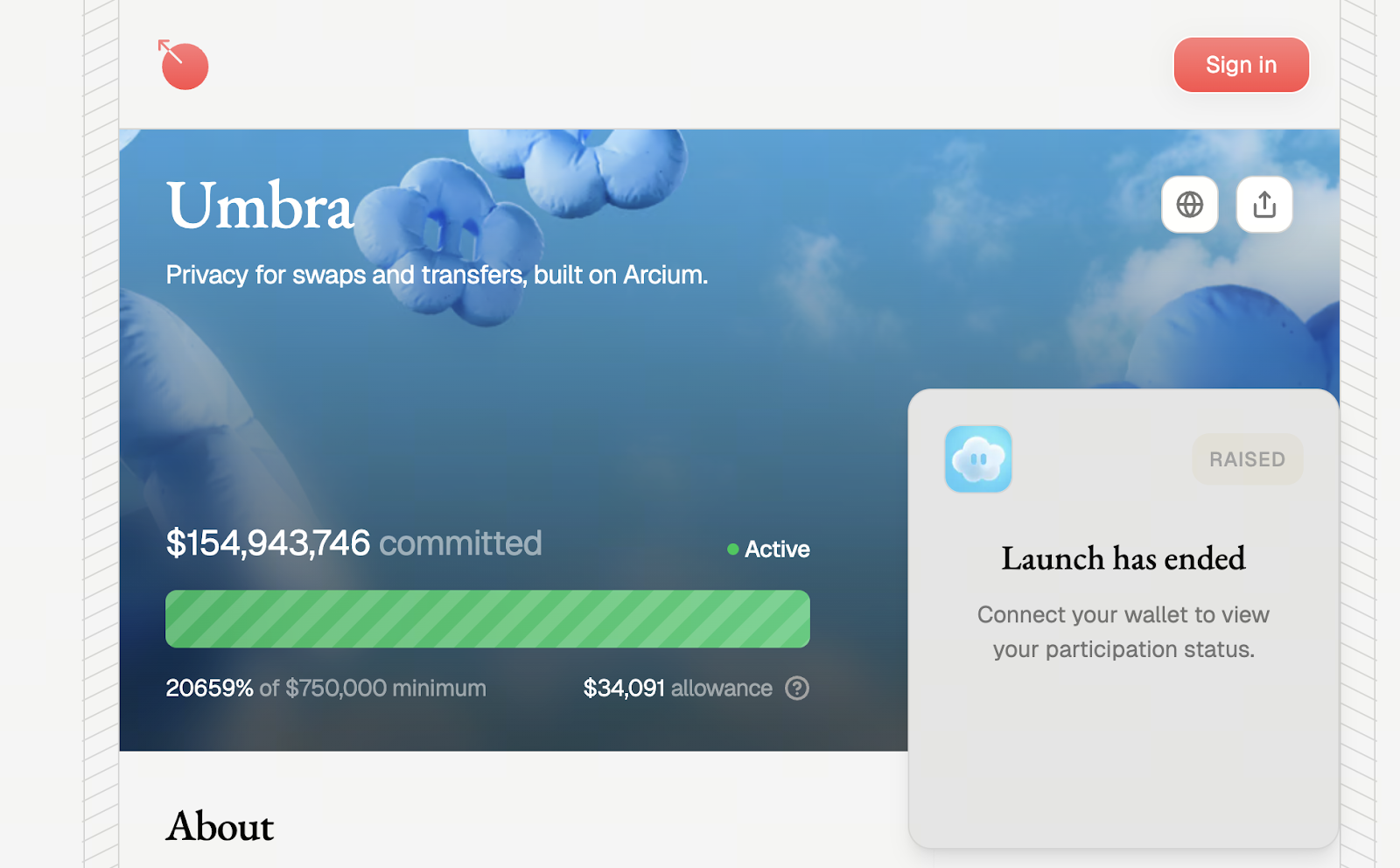 Fonte da imagem: https://metadao.fi/projects/umbra/fundraise